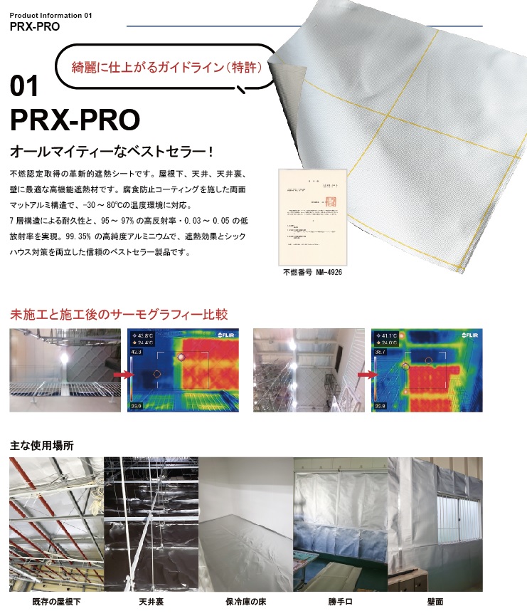 PRX-PRO|不燃認定<遮熱シート:特許工法>大臣認定番号 NM-4926